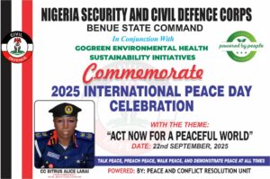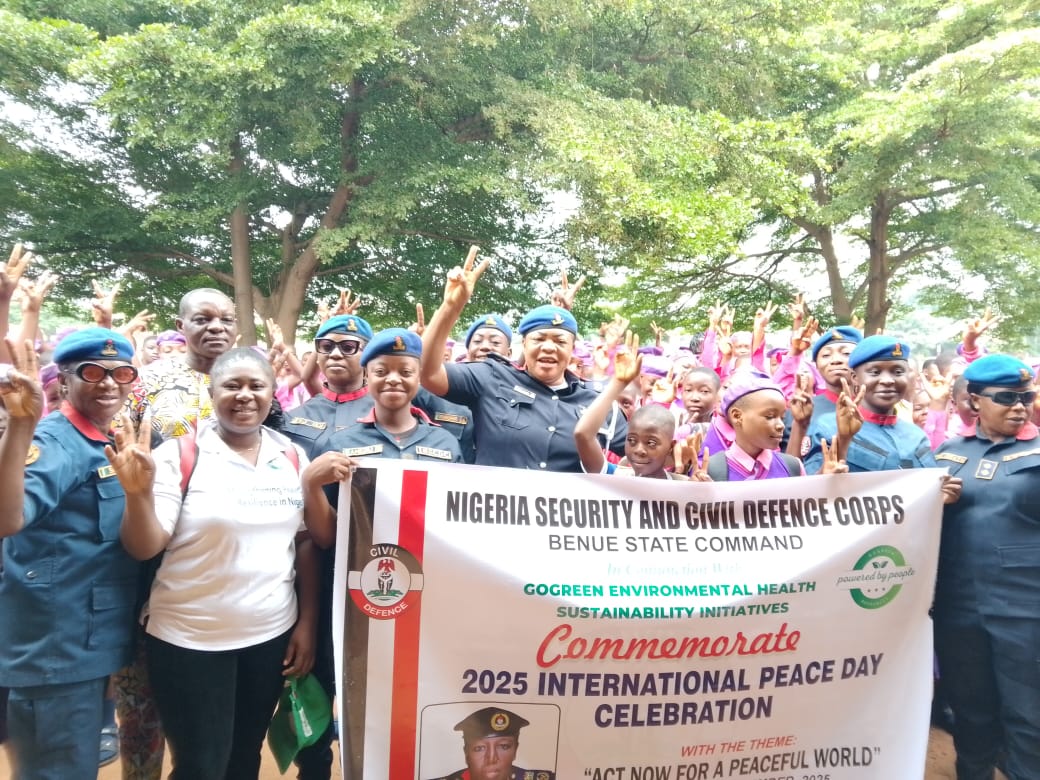 As part of activities marking the 2025 International Peace Day Celebration, #GoGreen, in partnership with the Nigeria Security and Civil Defence Corps (NSCDC), Benue State Command, organized a powerful peace sensitization campaign at Government Girls Secondary School, Makurdi, on 19th September 2025.